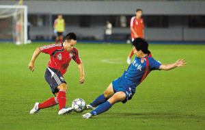 卡马乔昨日排出了451阵型,在首发阵容中派出了新老搭配的组合,郜林(微博)出任前锋,中场从左到右分别是冯仁亮(微博)、郑智、邓卓翔、刘健、吴坪枫,后卫线则由郑铮、杜威(微博)、李学鹏和吴曦(微博)组成,姜波(微博)把守球门。第23分钟,冯仁亮的传中便帮助郜林垫射取得领先,随后由于两名中后卫的配合出现失误,给东莞南城利用单刀机会扳平比分。