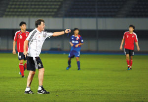 双方教练在这场教学赛中都显得有些特殊,中国队的主教练卡马乔在场上扮演起了临时裁判,东莞南城队则由临时技术顾问在场边指挥着比赛。赛后,这名来自日本的临时技术顾问仓田安治接受了记者的采访。