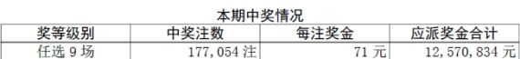北京时间10月20日,胜负彩11108期任九场开奖结果揭晓:一等奖177,054注,每注奖金71元,欧冠足彩再现火锅,本期投注总额19,830,422元。新浪网友表现疯狂,共有3360个投注方案中奖,其中网友[海魂1985]5单挑落660注头奖,头两单即命中600注,神奇程度让人惊诧![祝贺各位大奖得主,你不服,也来投注吧!]