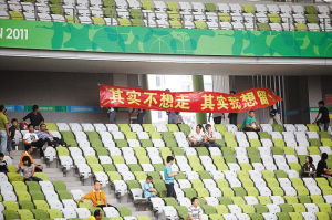 | 球迷的标语,何尝不是深足的心声,只是现实很残酷。 成江/图 |