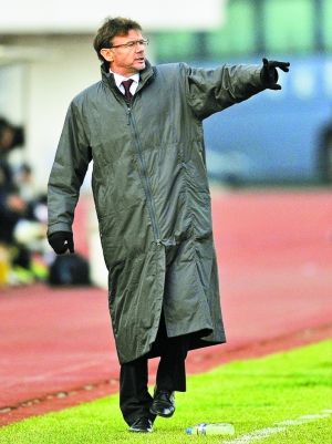 | 昨天,深圳红钻(微博)客场不敌长春亚泰(微博)。赛后,针对球队7名球员罢训一事,深足主帅特鲁西埃表达了强硬态度——必须进行处罚,否则他将离职。(新 华) |
