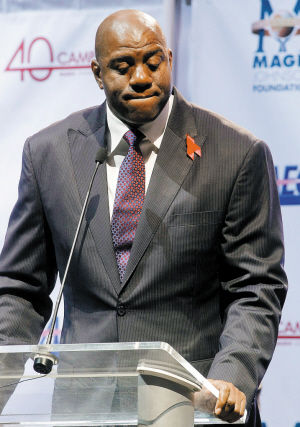在湖人主场斯台普斯球馆主办的慈善午宴上,眼前的约翰逊并不显苍老。52岁的他,身材略微发福,但依然红光满面,眼神里洋溢着乐观与阳光。