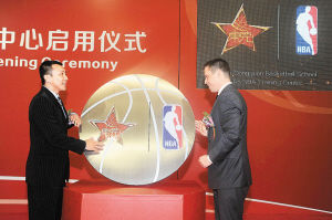 李群(微博)和NBA中国首席执行官舒德伟在启动仪式上