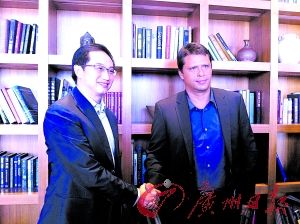 | 法里亚斯(右)昨日与富力签约。_ |