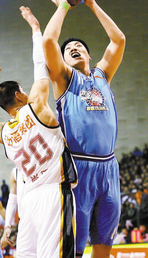 新疆队除了展示豪华双塔组合之外,也亮出了曾经作为NBA状元秀的肯扬·马丁。不过让人失望的是,曾经的状元秀除了偶尔在篮下来个勾手和暴扣之外,他的作用只在篮板和防守上。