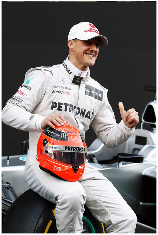 1月份当舒马赫迎来自己43岁生日的时候,车王曾说,“开始(复出)的时候我确实有点点生锈。但是现在一切都在变好,我相信梅赛德斯和我能取得成功。我们只要,再向前迈出一小步。”2月,当舒米和队友揭开W03面纱的时候,虽然这是一件过去已经做过很多遍的事情,在车王看来依然充满了意义。新的赛季,新的赛车,新的希望,哪怕他自己也承认,梅赛德斯还没有打造出一部具备夺取世界冠军实力的赛车。但起码,会比上赛季来得好。2012,理论上舒米待在F1的最后一季,车王粉还等着偶像能早日重登领奖台呢。
