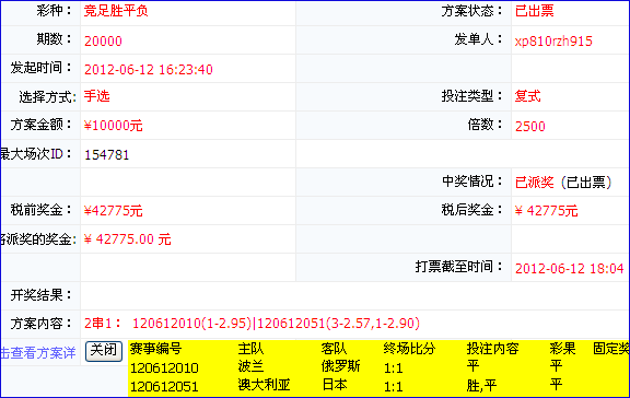 猛!新浪购彩平台网友1万元2500倍投竞彩赚3万