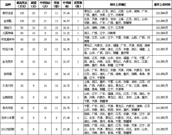 根据网上发布的2012年1-3月刮刮乐游戏月销量排行给出的数据显示:从全国范围来看,今年上半年新上市刮刮乐的市场表现良好,部分彩票一经上市就引起了彩民的极大关注。