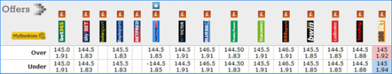 BET365总分盘口:145分