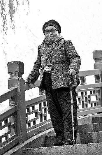 “来了!她就是你们找的老太太。”大约上午10点,随着一位市民的提醒,记者看到,一个老太太正从公交车上走下来,她戴着一顶红色帽子,脖子上挂着手机,还背着个背包,拄着拐杖慢慢走过来,一点也没有一般九旬老人老态龙钟的样子。