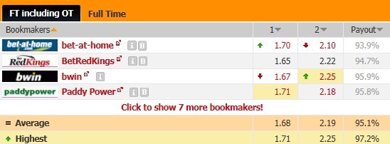 从阵容上看,火箭的深度显然略逊一筹,鉴于凯尔特人客场成绩并无出彩表现,博彩公司开出的赔率对火箭稍有高看,bwin和BetRedKings两家公司开出的主胜赔率稍微低于其他公司,和1.68的平均胜赔相差不大,从上升轨迹上看,火箭无疑值得追捧,本场又有主场之利,主队赢球机会较大。让分胜负开出主让2.5分,这也可以略微预测到本仗将是一场胶着战,过往火箭赢球的分差都大于这个数字,本场看好火箭赢球赢盘。大小分预设是204.5分,凯尔特人在进攻端并不出色,本场不宜追捧大分。