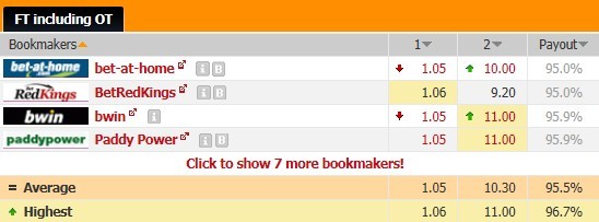 往绩上雷霆全面占优,而且双方状态有较大的差异,胜负不言而喻,博彩公司一致看好雷霆胜出,平均胜赔低至1.05,转化成主队赢球概率达到95%,虽然BetRedKings开出的负赔与其他三家公司有较大分歧,但平均负赔高达10.30,所以影响不大。让分胜负开出主让13.5分,国王近两仗都遭遇大败,本场面对攻击更为凶悍的雷霆,实在没有任何理由高看客队,看好雷霆主场大胜。大小分预设是204.5分,国王的防守强度不大,而雷霆的进攻已无需多言,本场推荐大分过关。