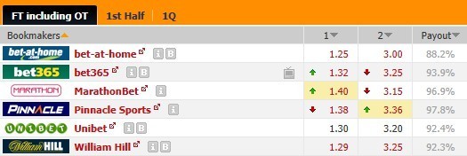 虽然麦迪复出对球队士气有所提高,但往绩上青岛却毫无优势,博彩公司开出的赔率一致看好主队,bet-at-home开出了在众多主流公司中最低的1.25胜赔,而英系公司代表bet365开出的胜赔处于各大公司的平均值,不过3.25的负赔则高出其他公司不少,客队取胜难度颇大,本场可稍微看高主队佛山。让分胜负开出主让3.5分,本赛季首次交锋佛山客场以8分之差击溃对手,过往3次赢球佛山取得的分差都大于这个数字,本场佛山有望赢球赢盘。大小分预设是206.5分,佛山近几轮的得分并不高,而青岛客场战斗力也并不突出,206.5的标准分过高,打出难度较大,本场还是走小分为宜。