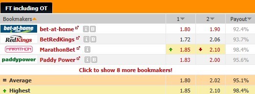往绩上处于一边倒的态势,灰熊保持对勇士的7连胜,可惜灰熊军心不稳,即使勇士上仗输球,但主场优势不可忽视。目前双方只相差半个胜场,如果本场比赛勇士获胜的话,将会超越灰熊,爬到西部第4的位置,球队势必会全力以赴。博彩公司的态度稍稍偏向主队,bet-at-home开出的赔率较为保守,主胜和主负赔率分别是1.80和1.90,在负赔上与平均赔率分歧较大,本场对主队可一搏。让分胜负只开出主让0.5分,说明两队实力非常接近,本场推荐勇士赢球赢盘过关。大小分预设是191.5分,虽然灰熊防守稳健,但双方近10场比赛有8场打出的总分大于标准分,况且勇士在主场取分能力可以信赖,本场适宜走大分。