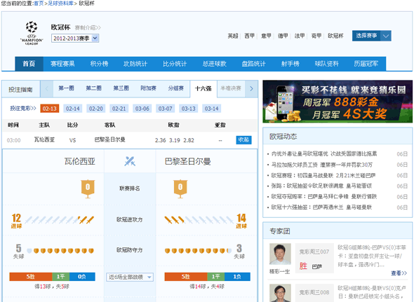 至于杯赛库的设计,产品人员更是用心良苦,力求为爱彩会员提供最实用、最全面、最明朗化的数据和最好的用户体验。其中尤其以欧冠杯的设计最是独到,最是丰富多彩。欧冠杯页面不仅包含了赛程赛果、积分榜、攻防统计、比分统计、总进球数统计、盘路统计、射手榜、球队资料、历届冠军此类杯赛库的常规板块,还加入了一个不仅包含了各类汇总数据,也包含了欧冠动态、专家团推荐、对阵双方实力PK的图表等实用内容的首页,相信一定会对您分析欧冠赛事提供巨大的帮助。