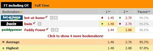 往绩上主队稍稍占优,上赛季唯一的一次交手,当时步行者客场2分险胜对手,结束了对火箭的3连败。本场欧赔方面一致力挺主队,平均胜赔只有1.46,Paddy Power开出的的胜负赔率相差较大,2.88的负赔高出bet-at-home和bwin开出的负赔不少,考虑到两队的状态,本场可追捧步行者。让分胜负开出主让4.5分,步行者本赛季主场场均净胜对手7.6分,战胜热火和尼克斯的分差都在5分以上,本场看好步行者赢球赢盘。大小分预设是195.5分,双方近10次交手有9场打出的总分都高于这个标注分,而且火箭的得分能力一向值得信赖,大分过关无疑是本场的最佳选择。