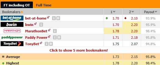 往绩上开拓者处于下风,近6次交手,开拓者只赢了一场,本赛季首次交锋,开拓者客场以91比114惨败给小牛,最近10场比赛开拓者只赢了3场,状态有所下滑,本场比赛欧赔稍稍高看主队一筹,bet-at-home和bwin继续开出同样1.70胜赔,而其他公司的胜赔都在1.80一下,不过和负赔相差不大,目前平均胜负赔分别为1.73和2.15,鉴于小牛往绩上优势及状态回升,本场不妨博客队取胜。让分胜负只开出主让0.5分,说明两队的实力还是非常接近的,而且让分与欧赔不吻合,本场看好小牛赢球赢盘。大小分预设是201.5分,双方近10次交锋只有2次打出的总分高于这个标准分,本场还是走小分为宜。