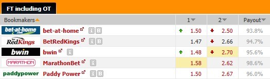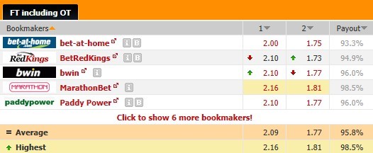 往绩上处于一面倒的态势,近10场交锋,篮网竟然10连败,近6个主场也以全败收尾,本赛季两次交锋,热火都在主场取得大胜,而篮网上一次赢球还要追溯到09年的3月份,当时球队主场96比88击退热火。而热火上一仗败兴而归后得到3天的休息时间,而且趁机拜访了白宫,对全队来说未尝不是一件好事,鉴于往绩上的劣势,博彩公司也倾向于客队热火,平均胜负赔分别为2.08和1.75,其中BetRedKings开出了最低的1.72负赔,与其他公司的分歧不大,本场看好热火取胜。让分胜负开出热火让2.5分,对于客场胜率不高的热火来说,庄家明显看好客队,近10次交锋热火赢球的分差都大于2.5分,本场热火有望再度赢球赢盘。大小分方面,预设是190.5分,篮网主场战斗力尚可,而热火的攻击群无需再度陈述[微博],本场推荐大分过关。