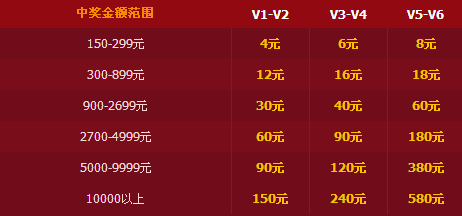 活动期间,但凡是在本网站代购竞彩2串1(竞足、竞篮,含混投)中奖金额不低于150元的方案,均可获得红包奖励,会员等级越高加奖越多,最多可获加奖580元,具体加奖情况如下图所示: