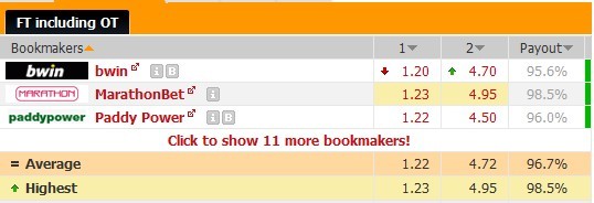 赔率数据:左为湖人,右为开拓者