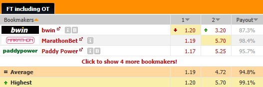 往绩上开拓者占尽优势,近5个主场取得了4场胜利,本赛季3次交手都是开拓者取胜,本场坐镇主场,取胜难度应该不大,三家博彩公司的态度相当一致,其中Paddy power开出了1.17的最低胜赔,而MarathonBet在负赔上则十分高企,5.70的负赔,以目前森林狼的阵容来看,打出难度相当大,本场主胜无悬念。让分胜负开出主让9.5分,虽然战绩上开拓者占优,但在胜负分差上并不明显,本赛季3次交锋开拓者都是小胜,本场开到9.5分,输盘机会较大,本场不妨冷看主队赢球输盘。大小分预设值为197.5分,虽然两队场均得分并不高,但双方一交手,大分总是容易出现,近10次交锋有9次打出的总分都高于这个标准分,本场看好两队在大分中分出胜负。