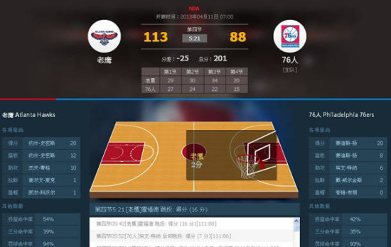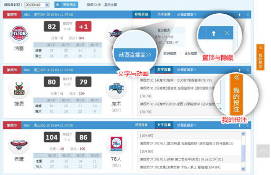 与其他传统的比分直播相比,篮彩即时比分最大的不同就是史无前例的加入了动画直播这一新兴元素。在动画直播室中,我们将文字直播的信息用动画的形式加以展开,让您全方位的享受一场属于您的篮球视觉饕餮盛宴。