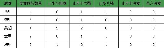 英超方面,曼联虽然以小组第一的身份出线,不料过早碰到皇马饮恨出局。阿森纳小组艰难出线后,遭遇了实力强劲的拜仁,被淘汰在情理之中。切尔西和曼城的表现着实让人大跌眼镜,前者小组赛第三无缘出线,开创了卫冕冠军小组出局的先河,后者更是在小组赛中只积三分垫底出局。四大豪门的萎靡,导致英超出现近17年来首次没有球队闯入欧冠八强的尴尬局面。