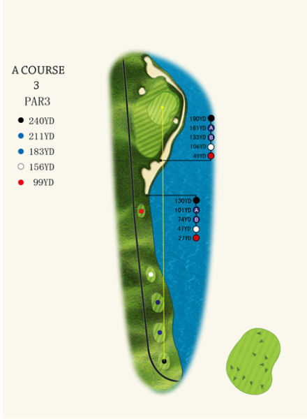 3号洞是一个“危机四伏”的三杆洞,距离长,且炮台状的果岭右前方的沙坑更令选手无所适从,如果畏惧果岭右侧的沙带和水的话,也不能因为躲避水池而把球太往左边送,因为如果没有掌握好力度,果岭左后方还有一个沙坑在那里虎视眈眈,所以本洞是考验选手中长铁杆距离和方向的完美球洞。