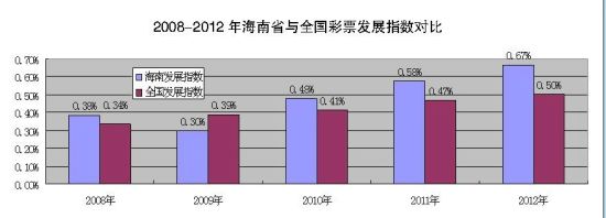 以这一标准认定的话,海南省的彩票发展指数,在2010年达到了0.48%,已经达到世界发达国家彩票发展水平,且从2010年至2012年三年间,海南省彩票发展指数数值一路走高,211年为0.58%;2012年则达到了0.67%。