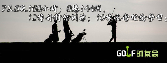 7天6夜168小时;8场144洞,12节针对性训练;10节理论教学;高密度、大运动量封闭教学,通过早训、下场、讲评、调整、再下场的良性循环,达到技战术、心理、节奏和差点的快速提升。