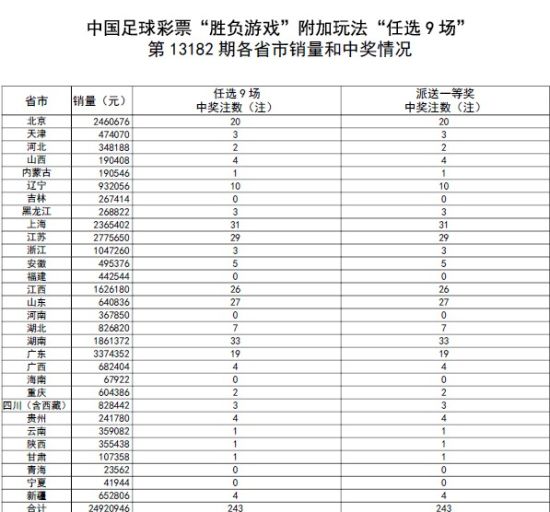 北京时间12月22日凌晨,胜负彩13182期全部十四场比赛全部结束,位居德甲[微博]积分榜前三甲的多特蒙德和勒沃库森主客场分别1球小负柏林赫塔和云达不莱梅,爆出大冷。本期足彩仅开出1注头奖,任九头奖也仅开出243注,加奖后单注奖金为77981元。上期任九头奖开出77注152,310元,如果全包投注上期和本期任九的话,可以净挣10万5!本期任九销量为24,920,946元。