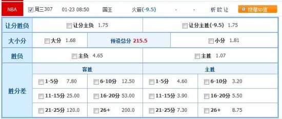 胜负:火箭胜 让分胜负:火箭让9.5分,让分主胜