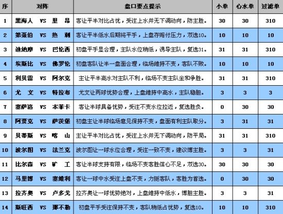 黑海人上轮联赛主场0比1负于矿工,结束之前两连胜,目前以10胜5平3负排名第5位,主场6胜2平1负能力不俗,里昂上轮主场3比1击败阿雅克,近期收获两连胜,目前以11胜7平7负排名第6位,客场5胜1平6负能输善赢,不过本场做客,球队也将会得到更多的看好。澳彩初盘给出客让平手/半球,但上盘维持在高水位阻力明显,下盘低水买进较易,对主队仍旧合理设防,易胜博同样的盘口,上盘超高水不易买进。本场比赛建议首选客胜次选主胜。