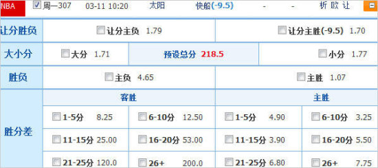大小分:小分(218.5分) 胜分差:主胜11-15分/16-20分
