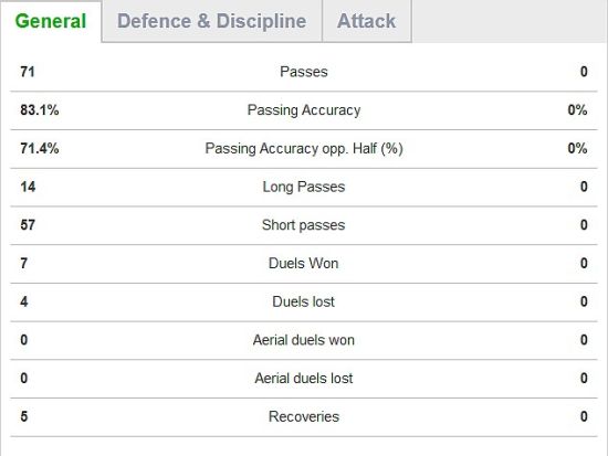 其他数据(如上表显示),也显示出马蒂奇“锚点+中转站”的作用。71次传球(全场第一)、其中57次短传、14次长传;传球成功率83.1%、其中前场传球成功率为71.4%;86次触球(全场第一);11次一对一拼抢(Duels)、成功7次(Duels Won)、成功率63.6%、1次犯规;6次铲球(全场第一)、1次解围、1次封堵、2次断球、5次夺回球权……
