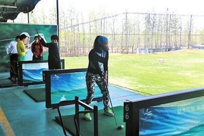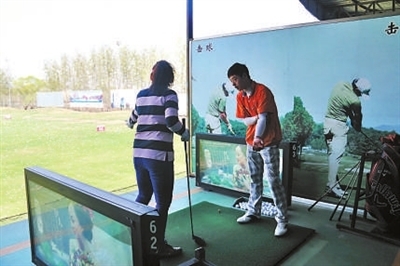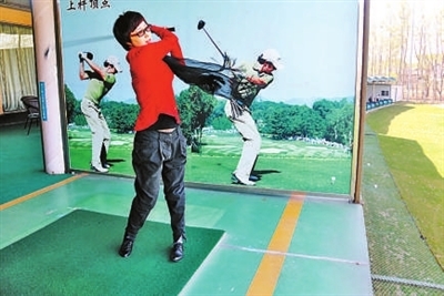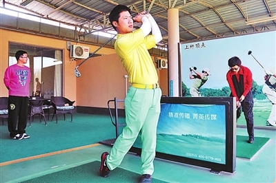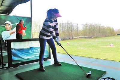 高尔夫球高而不贵乐趣多 北京北苑居民试打高尔夫