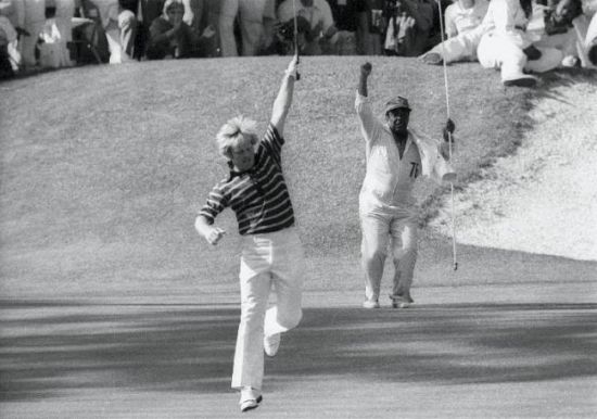 1986年,汤姆-凯特、塞弗-巴勒斯特罗斯和格雷格-诺曼都在领先组争胜。尼克劳斯当时已46岁,因年龄大而不被看好赢比赛,尽管他在9、10、11洞连续抓获小鸟。精彩击球:在15洞,尼克劳斯的开球很完美,而后他用4号铁从202码之外,直接进攻旗杆,留下了12英尺距离,稳稳拿下老鹰推,水到渠成地进入最后的争冠行列。接下来,有连续两洞抓鸟。与此同时,巴勒斯特罗斯与诺曼都很不给力地出现状况,从而使尼克劳斯第六次赢得了这项赛事。