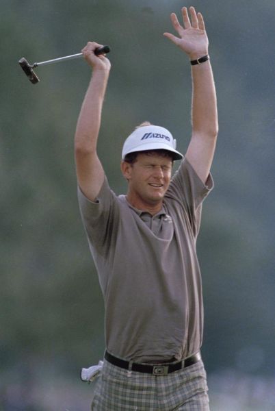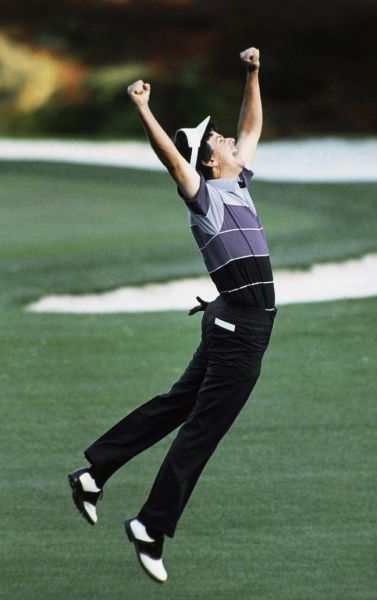 1987年,拉里麦兹一点也不被看好,因为和他一起进入骤死加洞赛的是,两位当时的高球好手格雷格-诺曼和塞弗-巴勒斯特罗斯。精彩击球:麦兹错过了果岭,小球落在了果岭右侧,有大概100英尺的距离。麦兹上演了非常完美的切杆技术,小球沿着线路滚入洞杯,一个几乎不可能的小鸟被他拿下了。兴奋的麦兹在阿门角跳起庆祝。