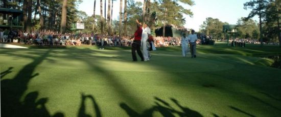 1935年,大师赛新人格尼-萨拉森(Gene Sarazen)在最后一轮,三杆落后领先者克雷格-伍德来到15洞。精彩击球:在235码开外,萨拉森打出经典击球,直接灌球进洞,射下信天翁。而后,剩下三洞连续保帕,将伍德逼进36洞延长赛,萨拉森最终成绩是144-149杆。那个双鹰,是国际公认闻名世界的一击。