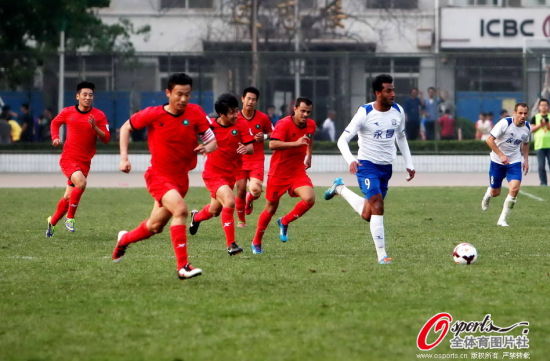 对中甲其他球队来说,北理工的主场历来是个难啃的骨头,一方面这个大学体育场场地条件与专业体育场有很大不同,另一方面学生军在主场球迷的助威声下往往会表现出顽强斗志和惊人的发挥。不过今天,在石家庄永昌的冲击下,北理工虽然一度看到扳平比分的希望,但最终还是1-3落败。这张图是比赛中,5位北理工球员一齐拼命追赶永昌外援卡隆的画面。与身后疲于奔命的北理工球员相比,一马当先的卡隆倒显得有些闲庭信步,处变不惊。当然,画面外的情况如何不好判断,但从北理工球员的分布情况来看,这次防守一定出了问题。
