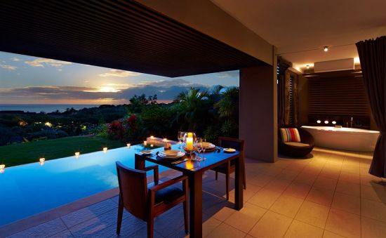 从度假酒店可欣赏到Natadola 海湾360度的全景,以及充满异域风情的景观花园。 一列甘蔗小火车在酒店内蜿蜒前行。