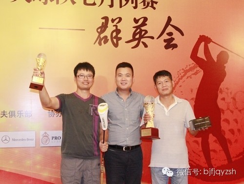 此次球赛共设十大奖项:总杆冠亚季军、净杆冠亚季军、一杆最远奖、距洞最近奖以及亲水奖、推杆王奖。经过长达五个多小时的激烈角逐,最终总杆冠、亚、季军分别由:中经联盟高尔夫球队队长苏自通、北京闽商高尔夫球队副队长石伟胜、北京闽商高尔夫球队队长林伟获得;根据北京闽商高尔夫球队比赛规则:总杆、净杆奖项获得者同一场球赛不能重复拿奖,故净杆亚军占时空缺,净杆冠军、季军分别由北京净山湖高尔夫球队队长鲁曙毅、北京闽商高尔夫球队倪智亮获得。一杆最远奖、距洞最近奖分别由:北京闽商高尔夫球队特邀宣传部长张先生、 北京市工商联副主席北京市工商联高尔夫球队队长王克林获得;两个趣味奖:亲水奖、推杆王奖分别由赞助方和兆高尔夫董事长高建民、北京市工商联副主席北京市工商联高尔夫球队队长王克林获得;恭喜以上获奖者!