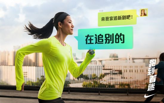 耐克公司推出“跑到着迷”市场活动,表现无论跑者开始跑步的原因是什么,当他真正爱上跑步的时候,会越跑越起劲,越跑越着迷。在本次上海国际马拉松的赛道中,耐克也在多个主要地段设立了“跑到着迷”的视觉主题广告,为跑者们加油。