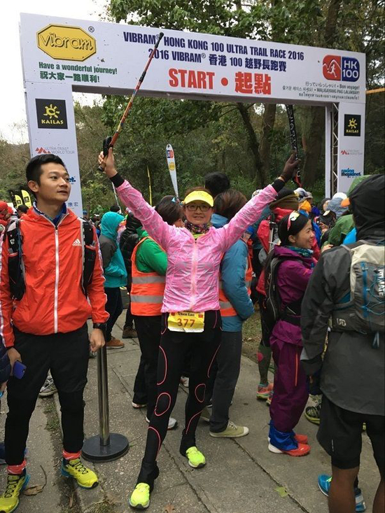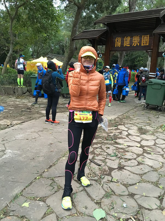 在参加港百前,我也算身经百战,除去半程不算已经完成42个全程及以上的赛事了。然而,在出行的车上,我却被一条条的祝福信息所感动,所震撼,也有些许稍稍的不安。22座山,100公里,爬升4500米以上,天气寒冷……这一切,对于我这个生活在平原地区的百公里越野新手来说,都是个难度相当大的挑战。一切的一切充满了迷人的未知。所以,我既有着挑战极限的兴奋,也有着对未知线路的胆怯,更有着对深夜翻山越岭的恐惧……以至于赛前临睡前,我问身边的孩子:你说妈妈明天能不能完赛?孩子不假思索地一脸肯定:肯定会的!在孩子的心中,我一向都能出色完成每个赛事,从未有过放弃!她还曾封我为拼命三郎!