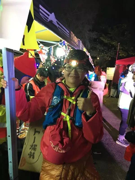 接下来,气温每况愈下,越来越冷。我因为寒冷而哆嗦着支撑到CP9,快速地又吃了第四杯泡面和第四个能量胶,准备做最后的冲刺!翻越大帽山,就有大帽衫,为了大帽衫,前进,前进,向前进!(此刻心中居然唱起了庄严的国歌)他说,我们休息下吧。我说:不!停下来会冷!翻越了几座山,他又说:我们休息下吧!我头也不回地继续拒绝!成功在望,刻不容缓!