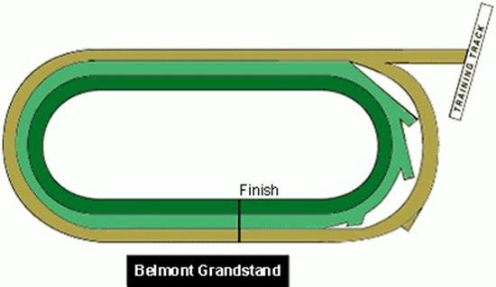 (逆时针方向设计的美国贝蒙园赛马场赛道,图片来自网络)