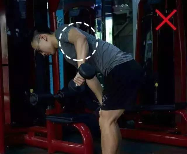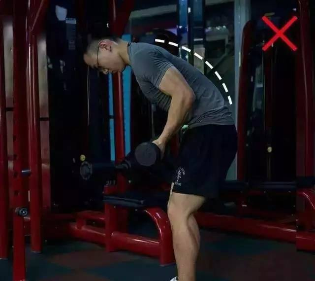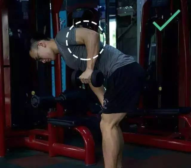 这个动作是为了锻炼背部的肌肉,注意把腰背挺直,让整个腰背尽量平行于地面,更多感受到背部的发力。如果腰背弯曲、俯身不充分,将很难有效刺激到背部肌肉。