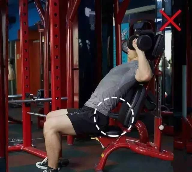 这个动作是为了刺激肩部前侧的肌肉,如果后仰角度大,会让胸肌的上侧也参与到发力,同时让腰部悬空也承受负荷。