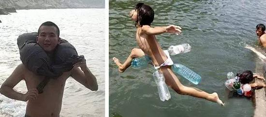 10、泅渡浮漂:吹起几个避孕套,放入一个长裤中,扎紧裤腰和裤腿,然后你抱着“她”,可以渡河。