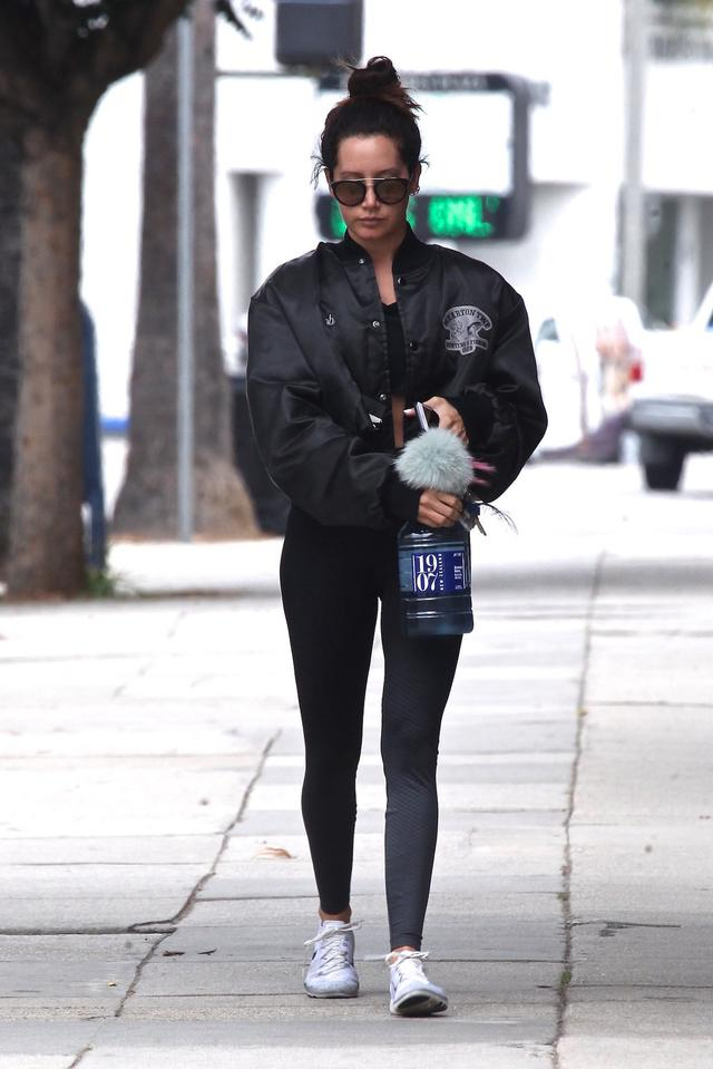 9月19日,阿什丽·提斯代尔(Ashley Tisdale)离开加利福尼亚州洛杉矶的健身房时穿着全黑衣服。